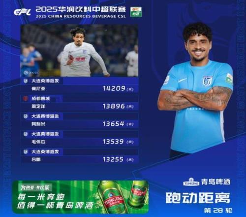 破紀錄!大連英博外援單場(chǎng)跑動(dòng)超1.4萬(wàn)米:中超近4年第一人