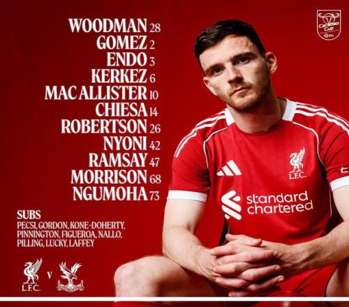 北京時(shí)間10月30日3:45,英聯(lián)杯第四輪繼續進(jìn)行,利物浦坐鎮安菲爾德球場(chǎng)迎戰水晶宮,本場(chǎng)主裁判為克雷格-鮑森,賽前雙方首發(fā)出爐。