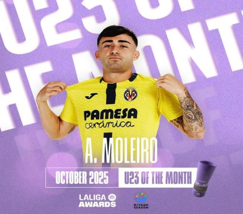 雷速體育10月30報道 西甲聯(lián)賽官方宣布,22歲的比利亞雷亞爾前鋒莫里羅當選10月份聯(lián)賽最佳U23球員。