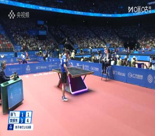 第4局,背水一戰的薛飛在4-7落后的情況下連拿6分,10-7手握3個(gè)局點(diǎn)。樊振東連得3分追平,但隨后薛飛再得2分,12-10贏(yíng)下了第4局。