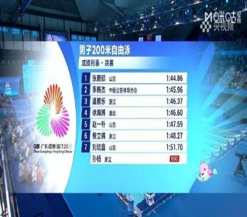 全運會(huì )男子200米自由泳:張展碩奪冠,潘展樂(lè )第三、孫楊犯規