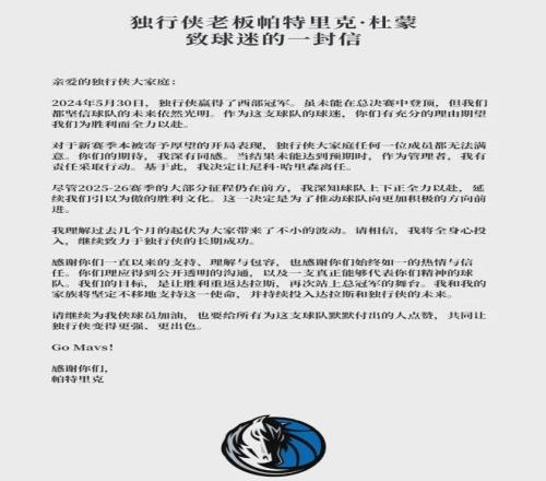 小牛這邊,杜蒙特給球迷寫(xiě)了一封信,表達歉意,但其實(shí)沒(méi)什么作用。
