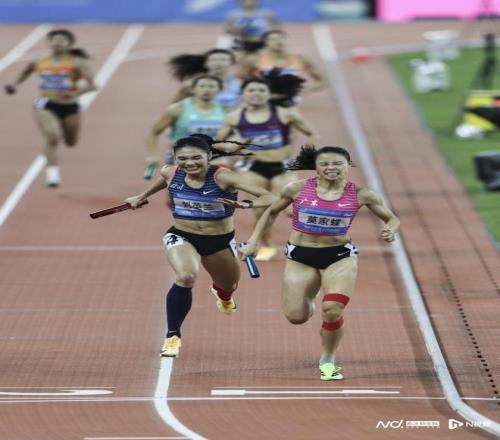 不過(guò),廣東隊發(fā)揮更出色,最后一棒莫家蝶力壓劉英蘭率先撞線(xiàn),奪冠成績(jì)?yōu)?分17秒54,僅領(lǐng)先第二名四川隊0.12秒。